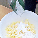 ピザ用チーズに片栗粉をまぶします。
