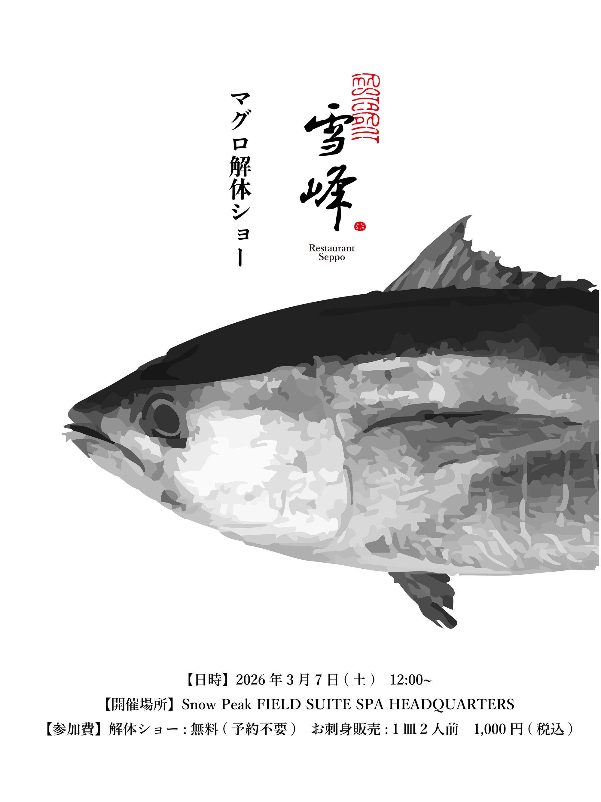 3月7日(土)にFIELD SUITE SPAエントランスにて「レストラン雪峰 マグロの解体ショー」を開催いたします。