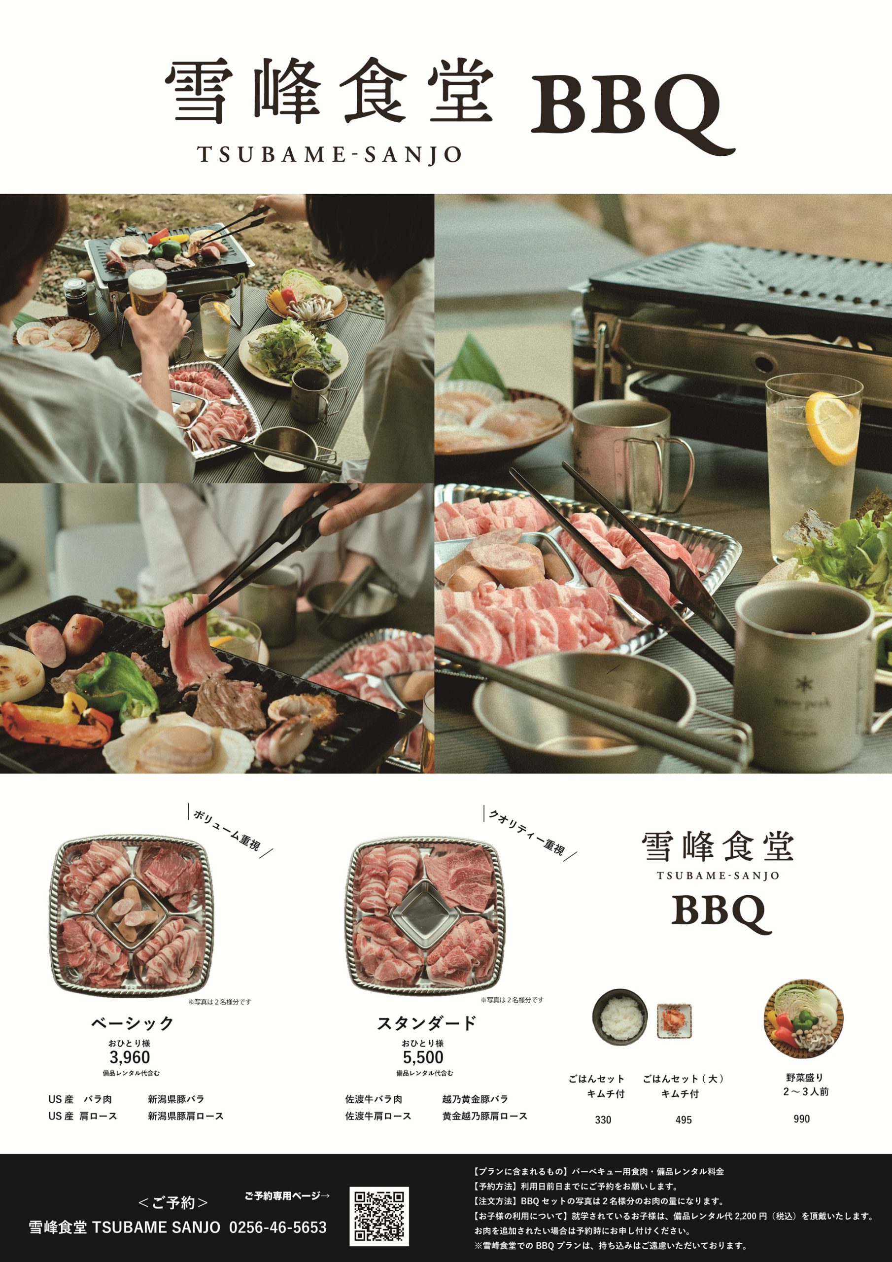今年も快適な場所でお手軽にBBQを楽しむことができる「雪峰食堂TSUBAME SANJO手ぶらBBQプラン」を開始いたします。