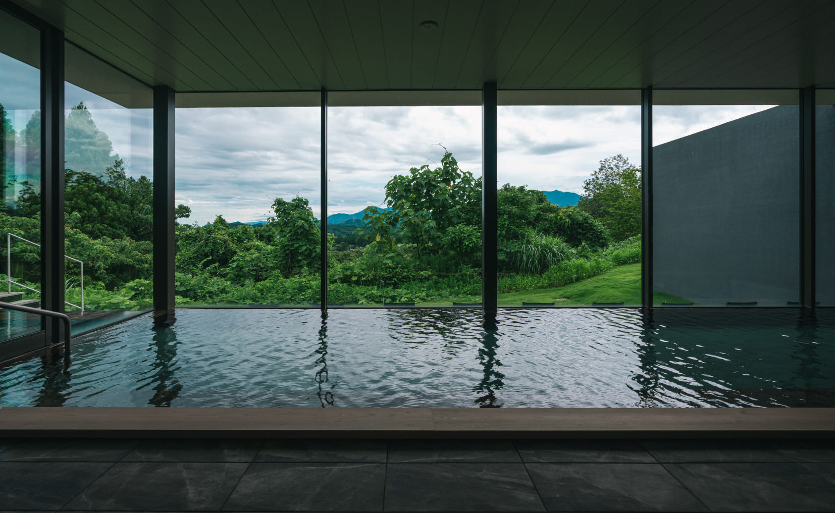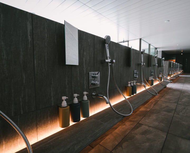 深さのある水風呂は、つま先から肩までしっかりと浸かることができます。温泉やサウナで温められた体が、水の中に溶け込んでいくような感覚を味わってください。