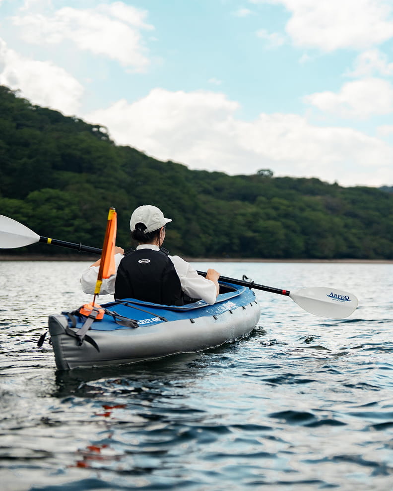 大沼でカヤック体験赤城大沼は、標高約1,350mに位置する赤城山最大のカルデラ湖です。夏はその涼しさを求めて訪れる方も多く、カヤックやボートなどのアクティビティが人気です。湖上に出て湖畔の景色を楽しみながら、抜ける風と湖の水に触れて涼を楽しんでみましょう。過ごし方を見る