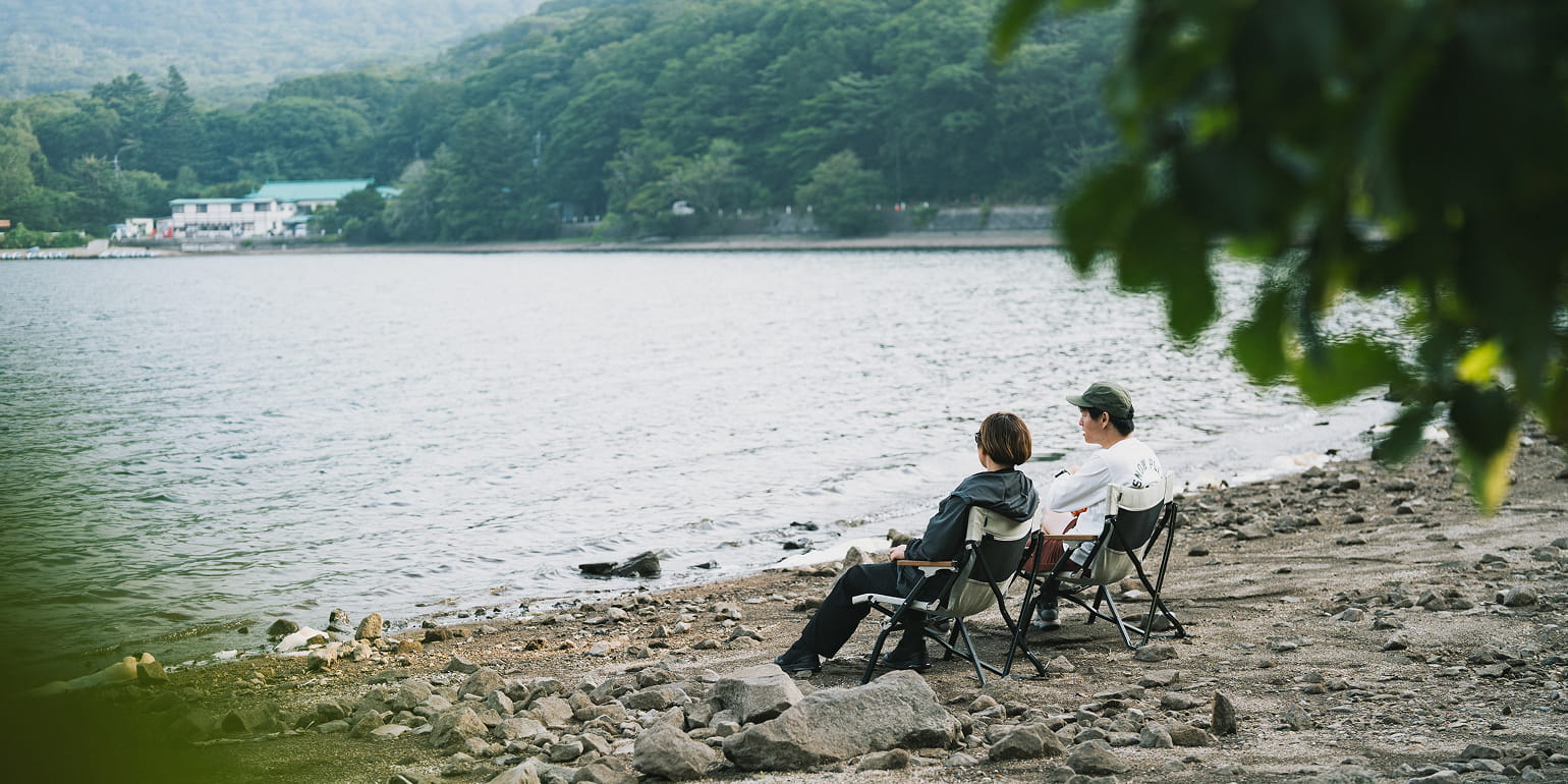 午前中に見つけたお気に入りの場所で、アウトドアチェアを持ち出してチェアリング。真夏でも木陰は涼しく、気持ち良く過ごすことができます。キャンプ場でもチェアのレンタルサービスを行っています。ぜひご利用ください。