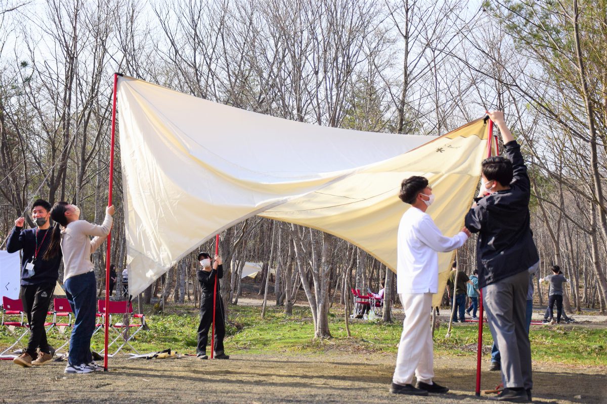 自然の中、チームの協働作業で行うテントの設営などのワークにより、屋内では感じることのできない「ワクワク」を実感した人が多い。