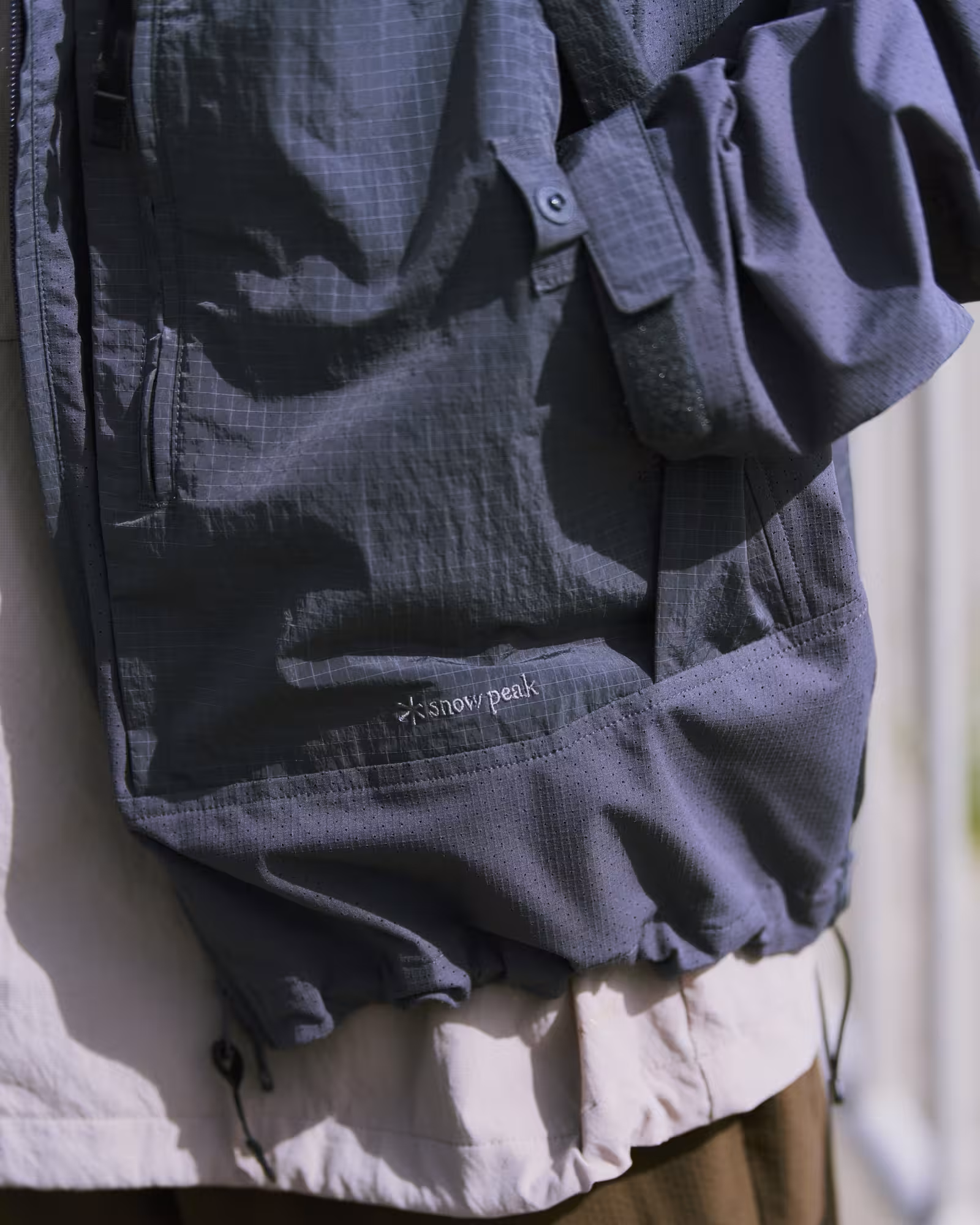 通気性と防虫性を備え、長いシーズン活躍するライトアウター。擦れやすい肩・肘・腰まわりやポケットには、強度のあるリップストップ素材を配し、日常使いからアウトドアまで安心して着用できる仕様に整えています。