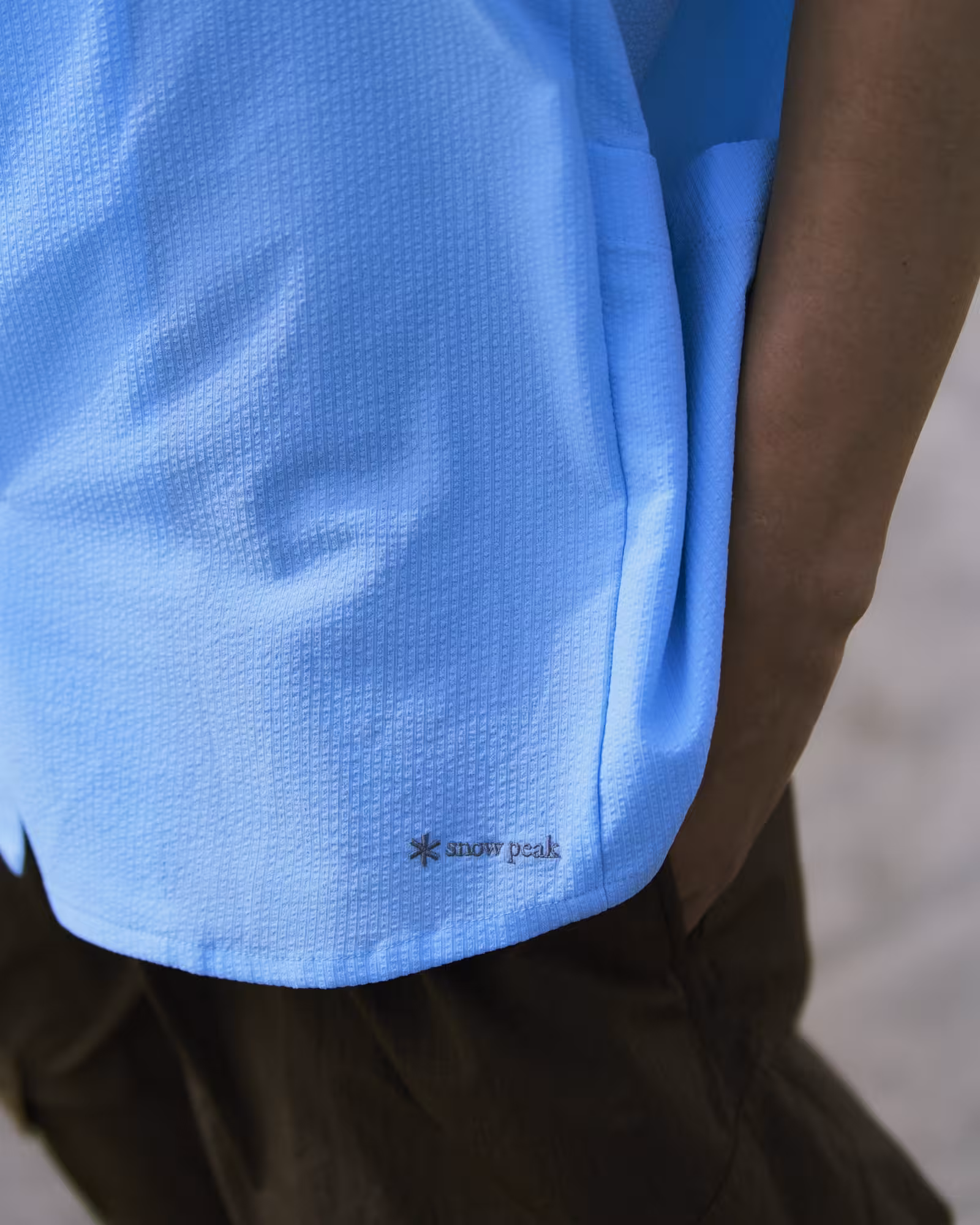 日陰を多くつくり、風を通す日本の簾から着想を得て生まれた新素材を採用し、暑い季節でも快適な着心地を実現しています。日本のブランドであるスノーピークとの親和性も高く、見た目にも涼やかな印象に仕上げました。