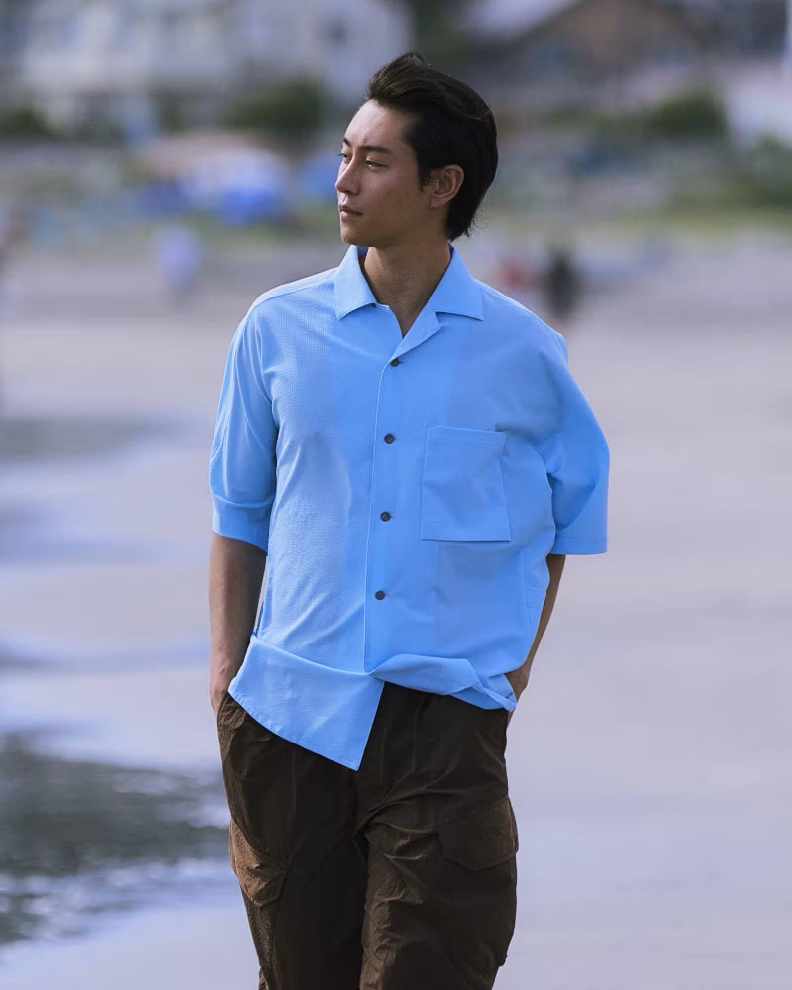 高い通気性、UVカット、速乾性を備えた、真夏に最適な新素材「Airo(エアロ)」シリーズから、ディテールにもこだわったオープンカラーシャツをピックアップ。