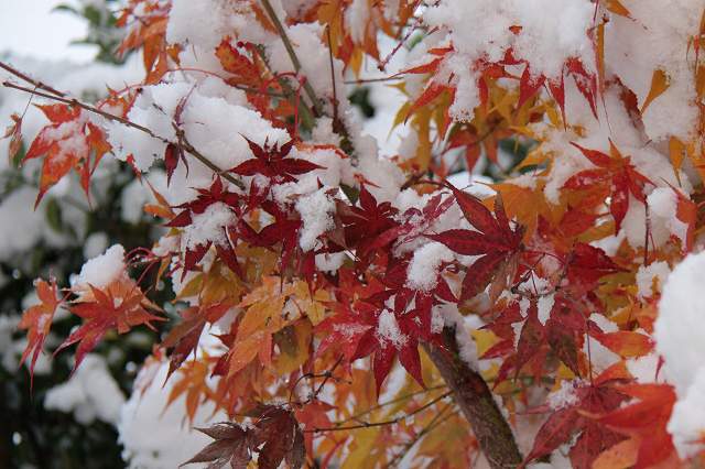 我が家のもみじが色づくころ、初雪降ります(爆)