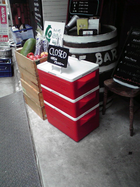 飲食店前のディスプレイです他社製品ですがアウトドア商品が使われていると気になります。 ちなみに我が家はキャンプ場ではスチールベルトを使用しています(^^;)