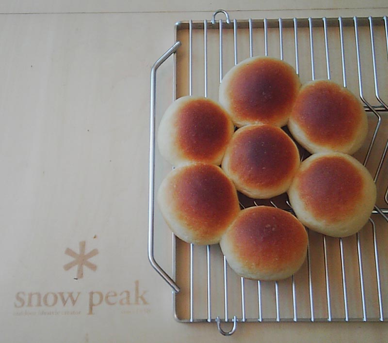 よくコネコネ ⇒ 約40度で1次発酵 ⇒ 整形 ⇒ D.O.で2次発酵 ⇒ D.O.で焼く(下火は極く弱火、上は中火)