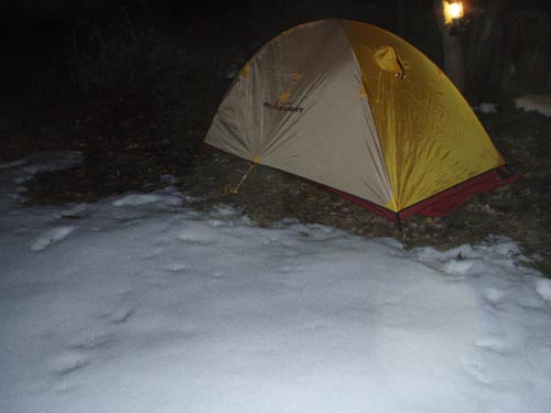 折角なので、点火式で気分を盛り上げましたが、 テーブルを忘れました・・・ バハは、ザックの一番したに? ランタンのケー…