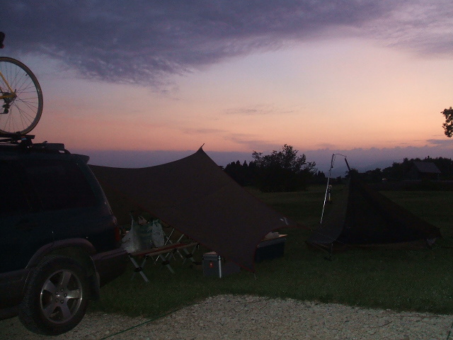 夕日に映えるオールドタープ(ウィング)