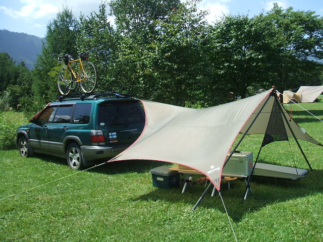 チャリのベースキャンプにピッタリです!! 側にペグダウンできる土があれば、駐車場でも活用可能です。 けっしてアスファルト…